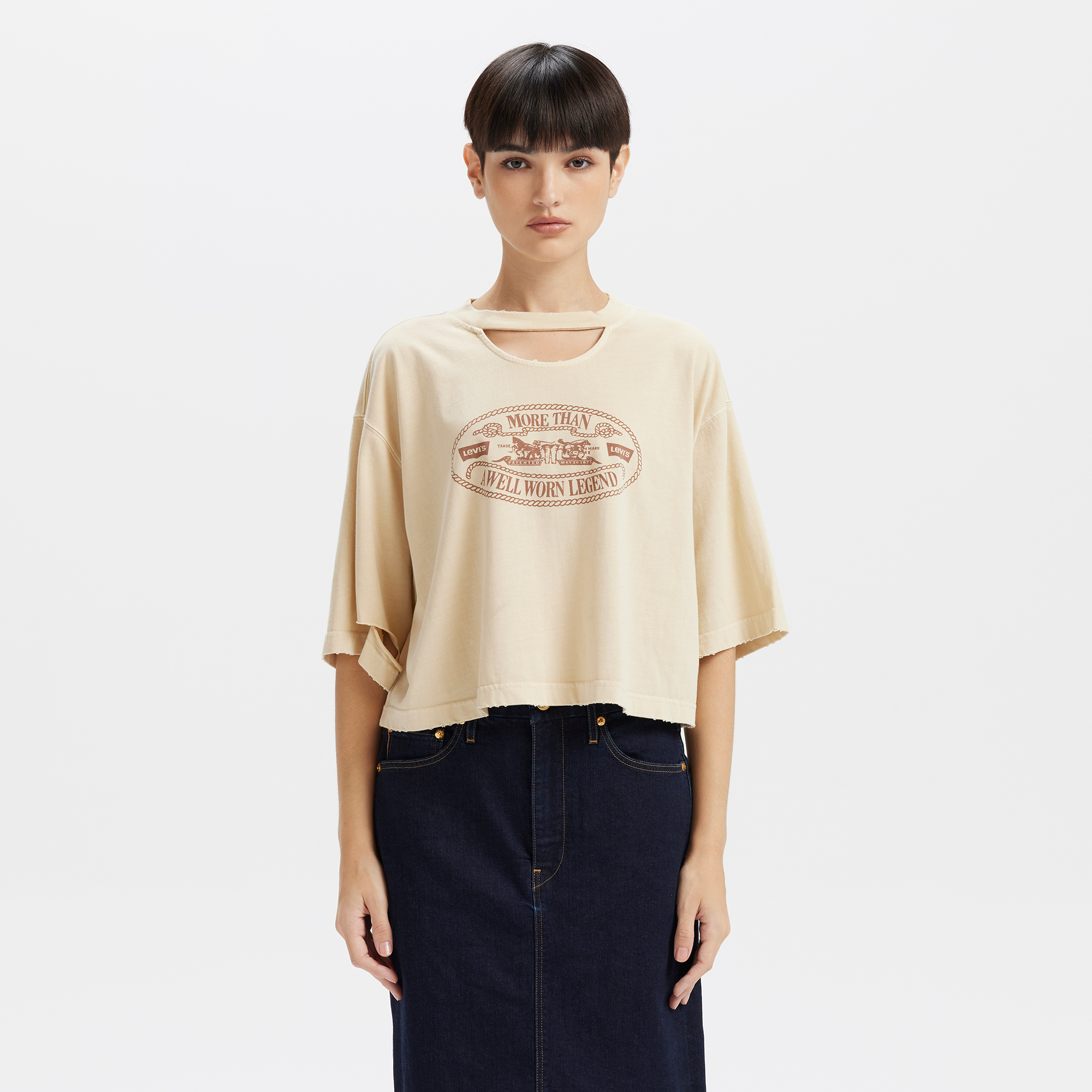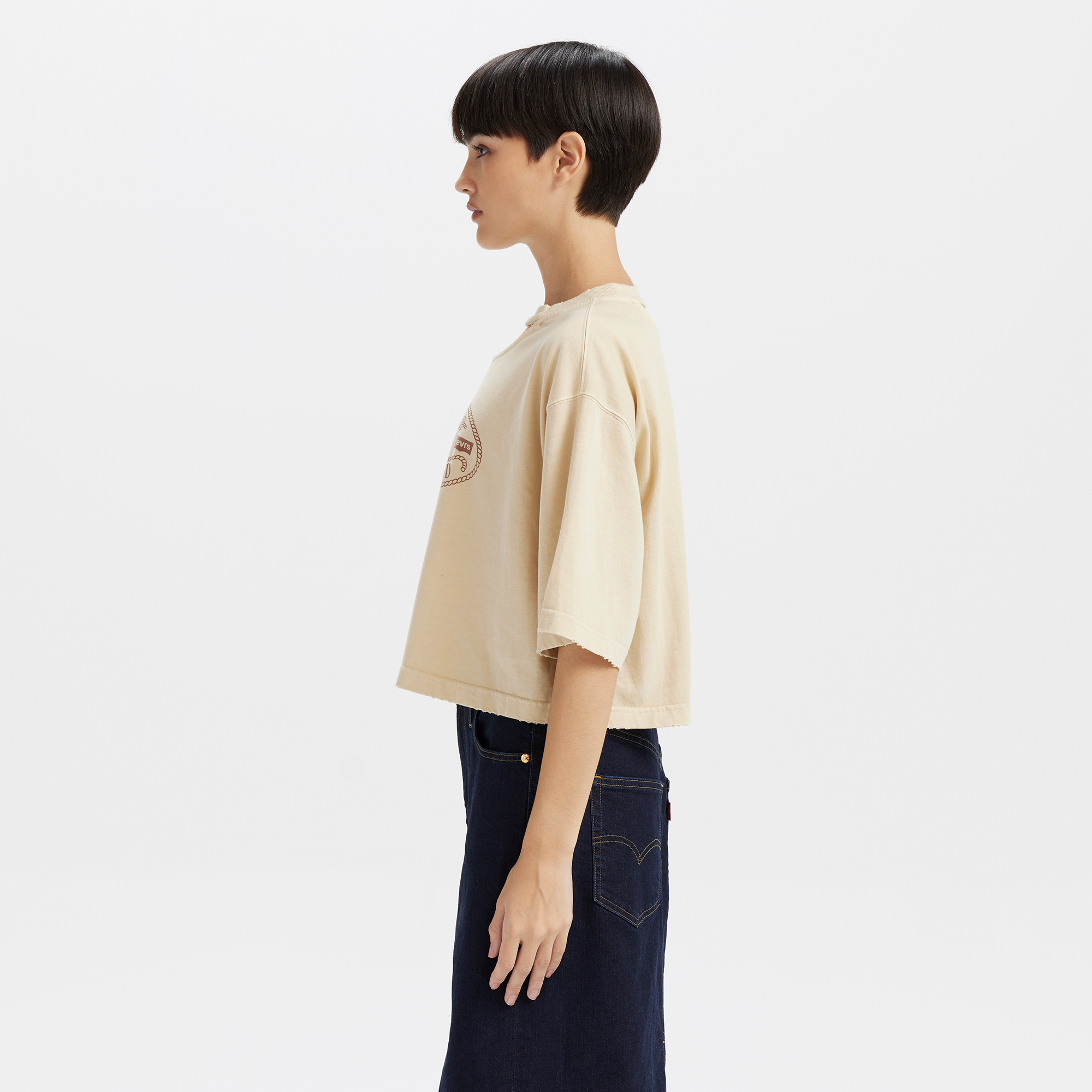 The Levi’s? Women’s Distressed Design Printed Logo Short Sleeve Tee combines trendy prints with a distressed style. showcasing a unique sense of individuality. This tee is not only fashionable but also exudes a casual rebellious vibe. adding energy and character to every outfit. Made from comfortable fabric with a relaxed fit. it’s the perfect choice for everyday wear. effortlessly pairing with jeans or a skirt for a laid-back look.