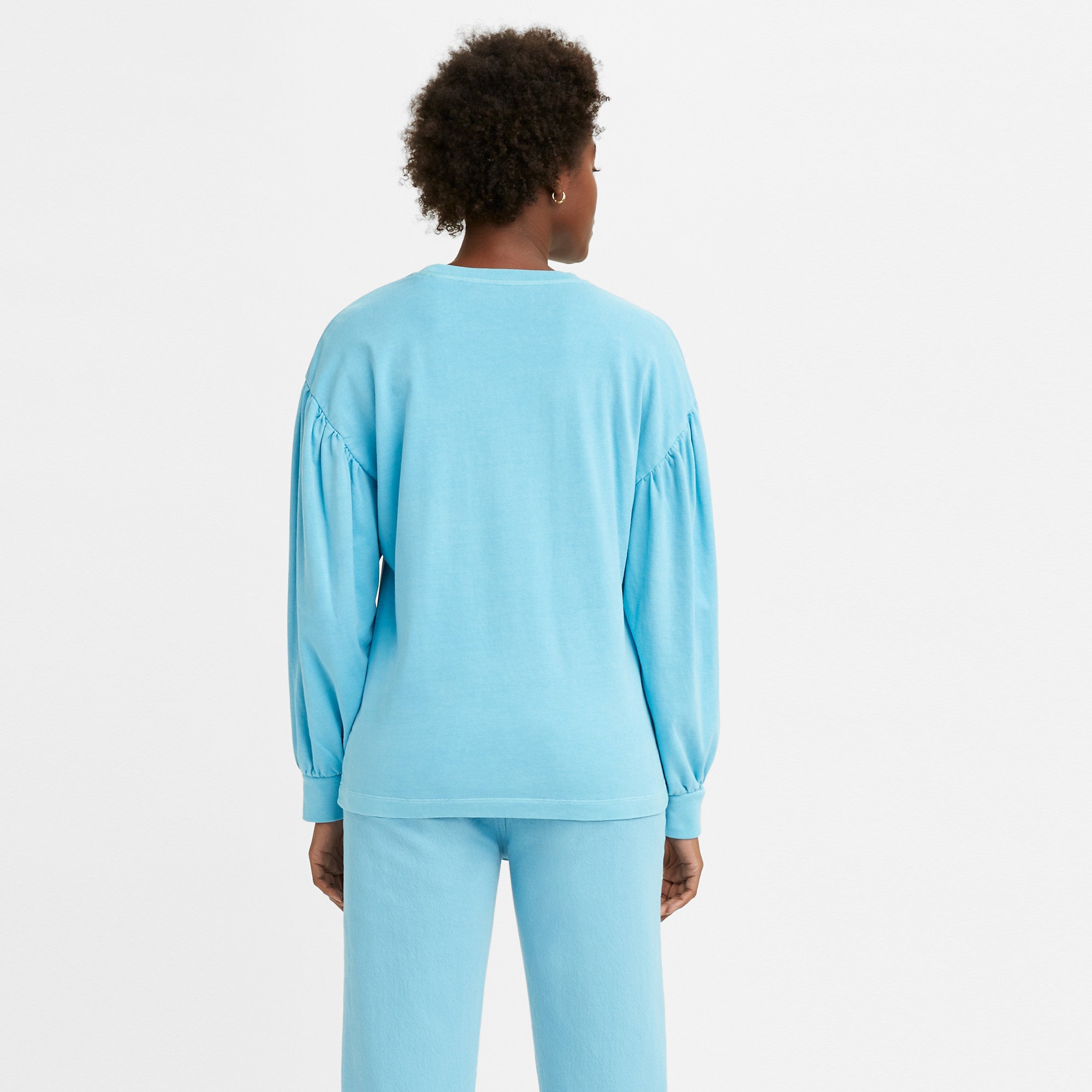 Organically grown cotton women’s long sleeve tee with drop shoulder and blouson sleeve