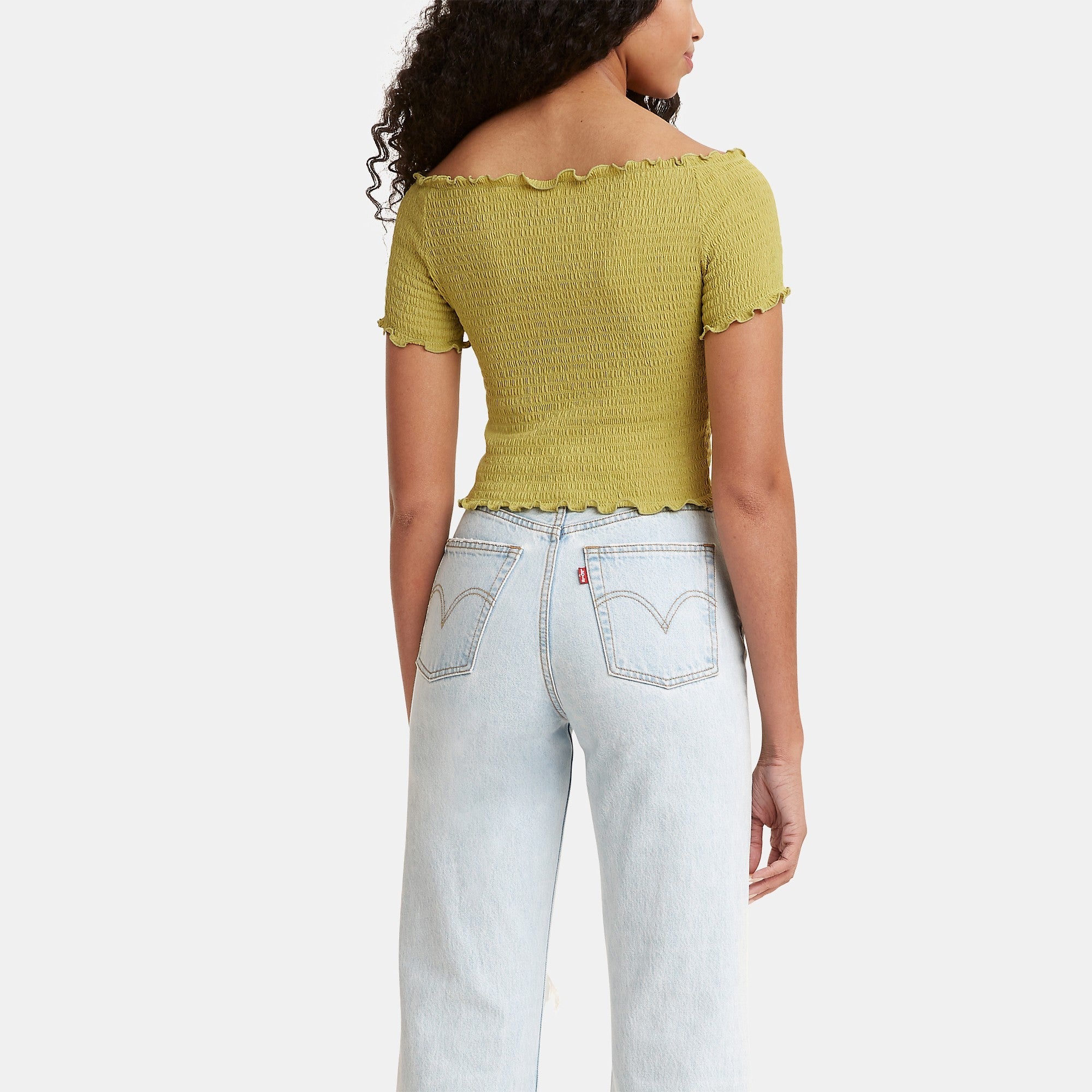 Levi’s® Gumdrop Top is inspired by the free. audacious spirit of adventurers everywhere. This cute top is fitted and falls slightly off the shoulder.